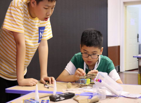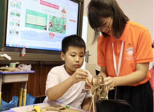 志愿者指導(dǎo)學(xué)生制作摩天輪活動(dòng)