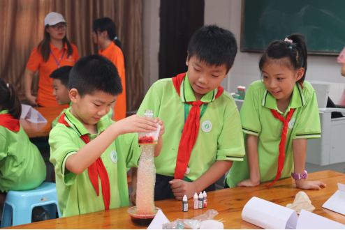 在為期七天的活動(dòng)中,重慶師范大學(xué)專(zhuān)家團(tuán)隊(duì)和志愿者代表分別開(kāi)展了2場(chǎng)博士講科普講座,志愿者們?cè)?所小學(xué)開(kāi)展了科學(xué)小實(shí)驗(yàn)、科技制作、科普課堂、科技比賽、科學(xué)探究等活動(dòng)共36次。形式多樣、內(nèi)容豐富的實(shí)踐課程深受孩子們的喜歡,通過(guò)這些活動(dòng)培養(yǎng)了學(xué)生自主探究能力、動(dòng)手能力、創(chuàng)新能力、邏輯思維和團(tuán)隊(duì)合作精神,滿(mǎn)足學(xué)生對(duì)科學(xué)的需求和向往的同時(shí),為進(jìn)一步賦能小學(xué)科學(xué)教育,助力三峽庫(kù)區(qū)萬(wàn)州和云陽(yáng)建設(shè)全國(guó)科創(chuàng)筑夢(mèng),助力雙減示范城市獻(xiàn)上一份靈感力量。
