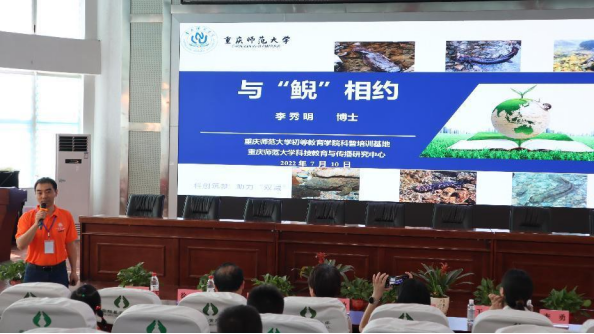 開辦儀式上學(xué)生代表和志愿者代表分別發(fā)言,紛紛表達(dá)了對此次活動的極大熱情。我院李秀明教授、王劍副教授分別在云陽縣和萬州區(qū)開展了《與“鯢”相約》、《碳達(dá)峰、碳中和》的博士科普講座。