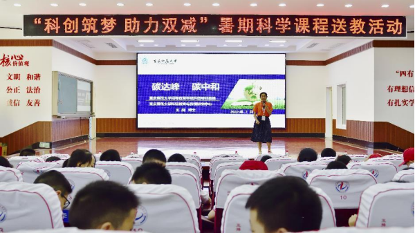 開辦儀式上學生代表和志愿者代表分別發(fā)言,紛紛表達了對此次活動的極大熱情。我院李秀明教授、王劍副教授分別在云陽縣和萬州區(qū)開展了《與“鯢”相約》、《碳達峰、碳中和》的博士科普講座。