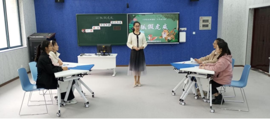 2019級小學教育(全科教師)1班的周佳藝同學,面對“如何在課堂教學中面向全體學生”的演講題目,她從2022版新課標核心素養(yǎng)的角度和教學組織的角度思考,向評委娓娓道來。模擬上課環(huán)節(jié),她帶領學生分析《狐假虎威》一課中狐貍的三句話分別是什么招數(shù),通過請生讀、指導讀、示范讀、角色扮演的方法體會狐貍的狡猾,在閱讀和演繹中梳理故事脈絡,循循善誘,呈現(xiàn)了一堂繪聲繪色的寓言課堂教學。