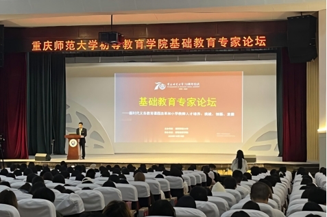 上午09:00,基礎(chǔ)教育專家論壇在初等教育學(xué)院學(xué)生活動(dòng)中心如期舉行。學(xué)院三名優(yōu)秀校友——重慶市北碚區(qū)朝陽(yáng)小學(xué)校黨總支書(shū)記、北碚區(qū)兩江春暉小學(xué)黨支部書(shū)記、校長(zhǎng)趙銘;重慶市沙坪壩區(qū)育英小學(xué)(重慶大學(xué)附屬小學(xué))校長(zhǎng)錢(qián)小波;重慶市大足區(qū)寶頂鎮(zhèn)實(shí)驗(yàn)小學(xué)黨支部書(shū)記、校長(zhǎng)劉圣萍依次以《從全局思考到協(xié)同行動(dòng):共創(chuàng)學(xué)校科學(xué)教育新格局》、《AI新時(shí)代教育理想之變》、《教育家精神指引下的好老師成長(zhǎng)之路》為主題作了主旨報(bào)告。學(xué)院院長(zhǎng)冉亞輝教授以《夯實(shí)基礎(chǔ)、尊重天賦、寬容差異、全面育人:高質(zhì)量基礎(chǔ)教育基本要求》為主題作了主旨報(bào)告。返校校友代表以及師生代表600余人參加了此次論壇。