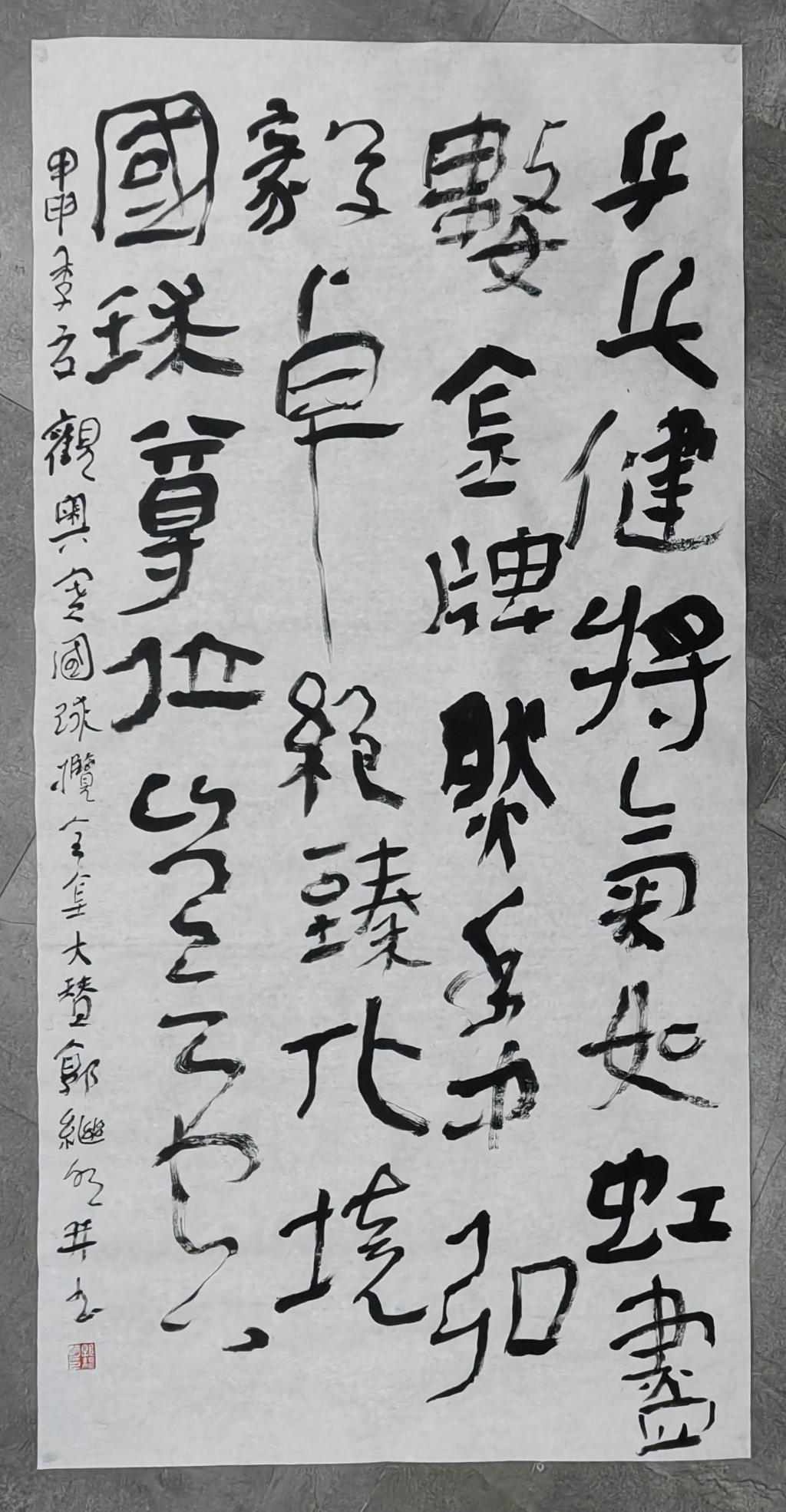 2024年11月22日至24日,教育部中國書法教育指導(dǎo)委員、重慶市書法家協(xié)會副主席兼學(xué)術(shù)委員會主任郭繼明教授在西安工業(yè)大學(xué)參加了中國書法家協(xié)會教育委員會書法作品展和第三屆全國書法教育論壇,并作《書法學(xué)專業(yè)中的硬筆書法教育問題檢索》主旨性發(fā)言,指出了當下硬筆書法教育存在的七大問題并提出解決策略。在展廳現(xiàn)場為青年學(xué)子和與會者解讀了參展作品的創(chuàng)作思路、創(chuàng)作材料、創(chuàng)作心境,并回答了相關(guān)提問。其參展作品如下: