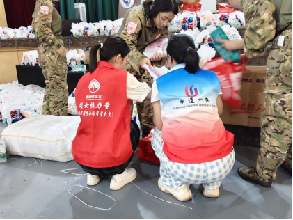 圖2:創(chuàng)新創(chuàng)業(yè)團隊志愿為新生裝軍訓慰問包