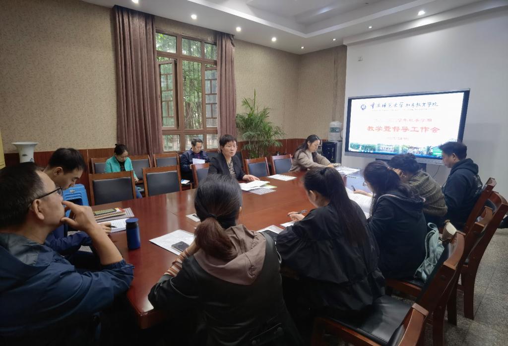 10月19日上午,我院在辦公樓一樓會議室召開本學(xué)期教學(xué)暨督導(dǎo)工作會。副院長蒲淑萍主持會議,各系(教研室)主任和院級督導(dǎo)專家及教科辦相關(guān)人員參會。