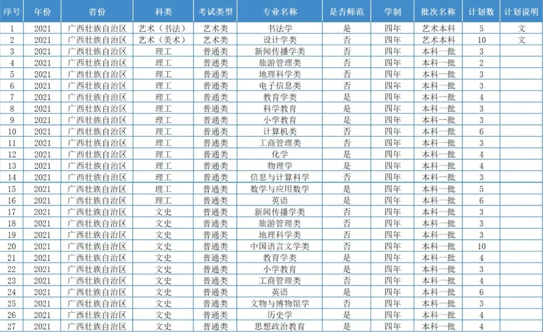 重師今年各省份的招生計(jì)劃
