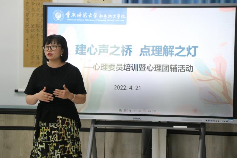 4月21日下午,初等教育學(xué)院在學(xué)院雙創(chuàng)實訓(xùn)中心舉辦以“建心聲之橋,點理解之燈”為主題的心理委員培訓(xùn)暨心理團(tuán)輔活動。活動由國家二級心理咨詢師、學(xué)院心理專員、輔導(dǎo)員魏玲老師主講,全院各班級心理委員參加。