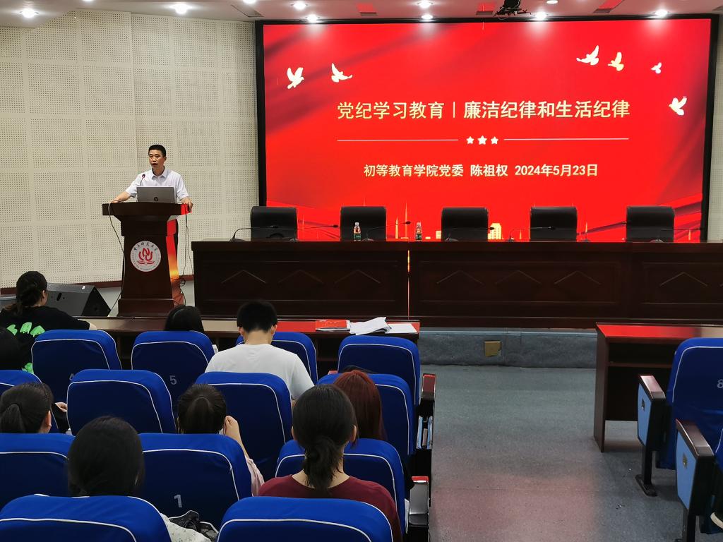 為深入學(xué)習(xí)貫徹習(xí)近平總書記關(guān)于黨紀(jì)學(xué)習(xí)教育的重要講話精神和重要指示精神,推動(dòng)黨紀(jì)學(xué)習(xí)教育走深走實(shí),做到學(xué)紀(jì)、知紀(jì)、明紀(jì)、守紀(jì),5月23日學(xué)院黨委書記陳祖權(quán)在逸思講堂講授黨紀(jì)學(xué)習(xí)教育專題黨課,學(xué)院教師黨員和學(xué)生黨員共150余人到場參加。