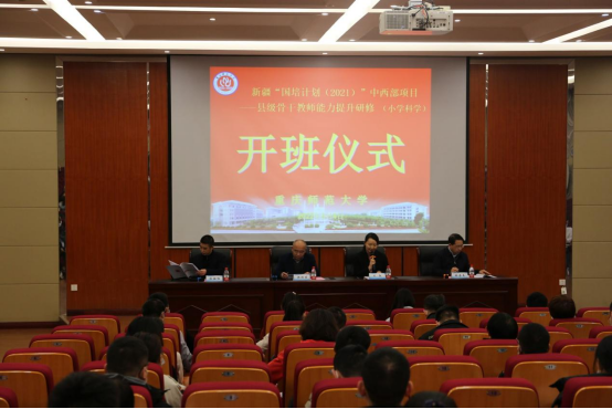 2022 年3月4日,新疆“國培計劃(2021)”中西部項目——縣級骨干教師能力提升研修(小學科學)班在重慶師范大學繼續(xù)教育學院第五教學樓正隆重開班,來自新疆各縣區(qū) 100 名小學科學教師齊聚一堂,同重慶師范大學繼續(xù)教育學院國培項目的負責領導舉行開班典禮。