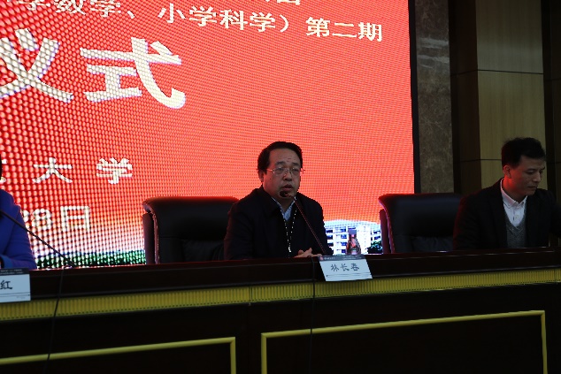 小學(xué)科學(xué)首席專家林長春教授從專業(yè)培訓(xùn)的角度出發(fā),他表示學(xué)院高度重視此次培訓(xùn),精心策劃、研究培訓(xùn)方案、選聘優(yōu)秀授課教師,全面保證培訓(xùn)質(zhì)量。以教師需更新新課程標(biāo)準(zhǔn)的理解認(rèn)識為契機(jī),對小學(xué)科學(xué)班和小學(xué)數(shù)學(xué)班的教師提出了更多希望,希望老師們能形成共同體,在本次的學(xué)習(xí)中交流進(jìn)步,學(xué)有所獲。