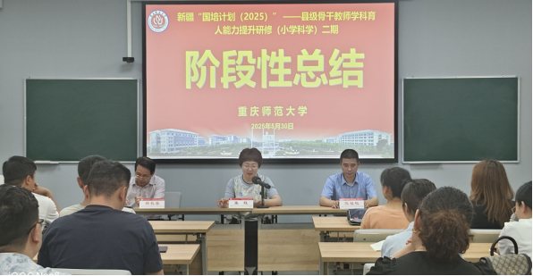 2025年5月30日,新疆“國(guó)培計(jì)劃(2025)——縣級(jí)小學(xué)科學(xué)骨干教師能力提升培訓(xùn)項(xiàng)目”第二期培訓(xùn)在我校圓滿完成。來(lái)自新疆50位小學(xué)科學(xué)教師參加此期培訓(xùn),培訓(xùn)由重慶師范大學(xué)教師教育學(xué)院主辦、初等教育學(xué)院承辦。下午,第二期培訓(xùn)階段性總結(jié)會(huì)在教師教育學(xué)院204教室舉行,教師教育學(xué)院黨委書(shū)記張紅、初等教育學(xué)院黨委書(shū)記陳祖權(quán)和小學(xué)科學(xué)首席專家林長(zhǎng)春教授出席會(huì)議。會(huì)議由初等教育學(xué)院辦公室主任胡燕主持。