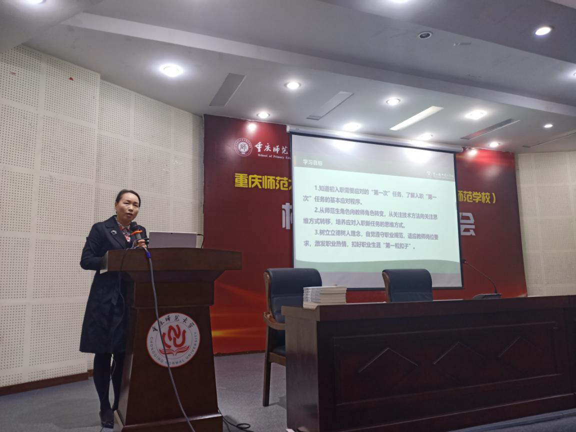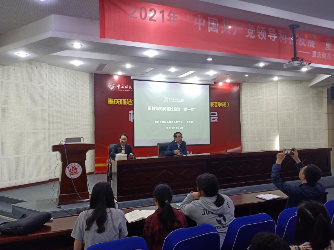 為加強(qiáng)對(duì)畢業(yè)生的就業(yè)指導(dǎo),幫助同學(xué)們順利渡過(guò)新入職的適應(yīng)期,2021年5月26日,學(xué)院特邀請(qǐng)璧山區(qū)小學(xué)道德與法治教研員、中學(xué)高級(jí)教師,璧山區(qū)教師進(jìn)修校原校長(zhǎng)曾佑惠老師為大四學(xué)生作了一場(chǎng)主題為“新教師如何輕松應(yīng)對(duì)‘第一次’”的專(zhuān)題講座。學(xué)院院長(zhǎng)林長(zhǎng)春和黨委副書(shū)記陳洪偉出席了本次講座。