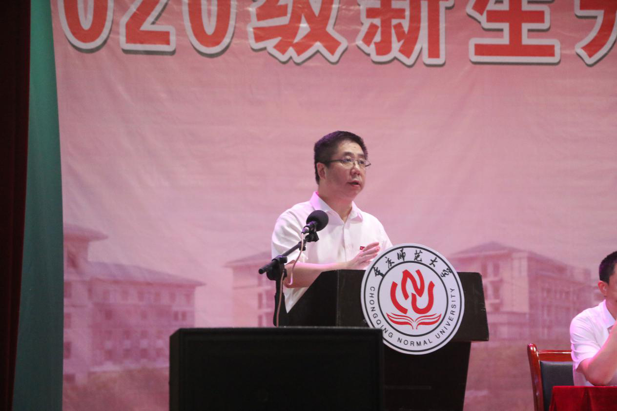 在激昂的國(guó)歌聲中,開始了本次軍訓(xùn)動(dòng)員大會(huì),新生們站直了身體,唱國(guó)歌、行注目禮。接著進(jìn)行的是優(yōu)秀新生頒獎(jiǎng)儀式,臺(tái)上獲獎(jiǎng)的同學(xué)們洋溢著自豪的笑容,這也堅(jiān)定了新生們刻苦學(xué)習(xí)的決心和信心。隨后,教師代表小學(xué)教育數(shù)學(xué)系主任葉志強(qiáng)代表全體教師致辭,他在表示對(duì)承訓(xùn)教官表示熱烈的歡迎后,還鼓勵(lì)新生堅(jiān)持通過軍訓(xùn)這項(xiàng)考驗(yàn),并且貼心地讓各位新生注意安全。在2020級(jí)新生中,小學(xué)教育(全科教師)專業(yè)的林雅君同學(xué)作為新生代表上臺(tái)發(fā)言,她表示將認(rèn)真完成軍訓(xùn)任務(wù),不因天氣炎熱等外界因素退縮,努力在軍訓(xùn)期間得到鍛煉,為大學(xué)生活做一個(gè)美好的開端!而后,在2020級(jí)學(xué)生軍訓(xùn)師參謀長(zhǎng)張鴻中在講話中表示會(huì)嚴(yán)格要求各軍訓(xùn)教官,強(qiáng)調(diào)軍訓(xùn)紀(jì)律,保障軍訓(xùn)過程中新生們的安全。儀式最后,重慶師范大學(xué)校長(zhǎng)孟東方向大家發(fā)表了講話,他表示希望同學(xué)們?cè)诮窈蟮膶W(xué)習(xí)生活中踐行“厚德·篤學(xué)·礪志·創(chuàng)新”的重師校訓(xùn),努力汲取知識(shí)營(yíng)養(yǎng)和精神力量,在重慶師范大學(xué)放飛自己的夢(mèng)想。孟校長(zhǎng)的話滿懷深情、情真意切,同學(xué)們都深受啟發(fā)和鼓舞。