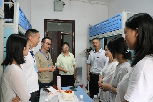 下午4時(shí),學(xué)院黨委書(shū)記陳祖權(quán)、團(tuán)委書(shū)記兼學(xué)工辦主任王亮以及新生輔導(dǎo)員彭新一行專(zhuān)程前往新生寢室6411,為當(dāng)天過(guò)生日的雷麗紅同學(xué)送上驚喜祝福。彭新為她送上了精心準(zhǔn)備的生日蛋糕。這份特殊的關(guān)懷,讓初離家庭的新生感受到如家般的溫暖與歸屬。陳祖權(quán)還與雷麗紅同學(xué)及其室友進(jìn)行了親切交流,詳細(xì)了解大家的入住感受和適應(yīng)情況,并勉勵(lì)同學(xué)們盡快轉(zhuǎn)變角色、融入集體,珍惜大學(xué)時(shí)光,勤奮學(xué)習(xí)、全面發(fā)展。隨后,陳祖權(quán)隨機(jī)走訪(fǎng)了多間新生寢室,與同學(xué)們平和交談,細(xì)致詢(xún)問(wèn)大家初入校園的感受和面臨的困難,并耐心解答疑惑。他叮囑同學(xué)們要互相關(guān)心、共同進(jìn)步,以積極的心態(tài)迎接新的學(xué)習(xí)生活階段。